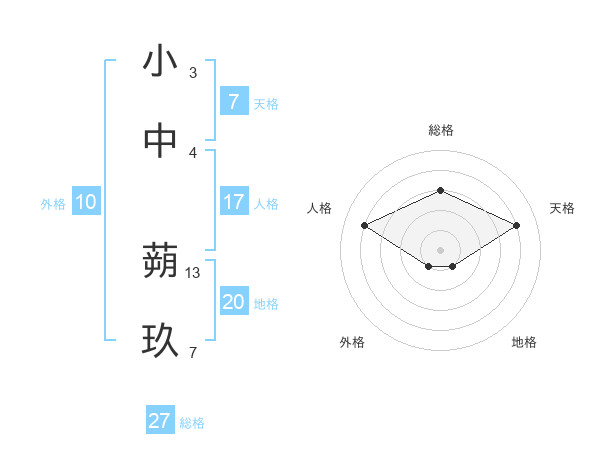 小中 蒴玖さんを姓名の画数から五運を鑑定