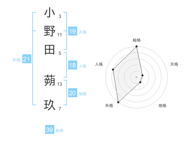 小野田 蒴玖さんを姓名の画数から五運を鑑定