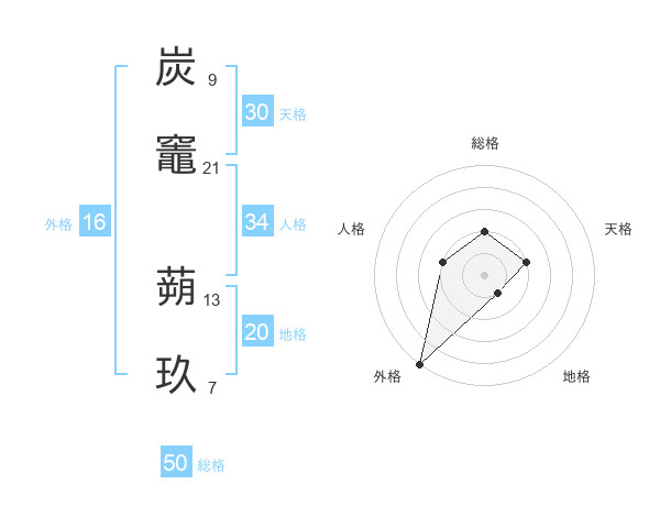 炭竈 蒴玖さんを姓名の画数から五運を鑑定