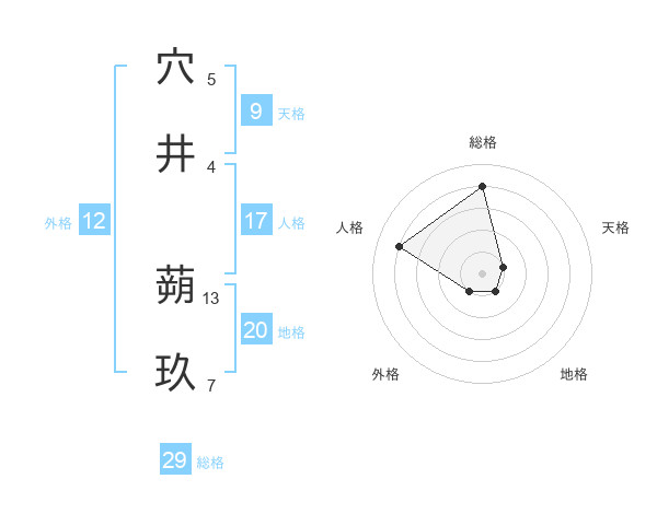 穴井 蒴玖さんの総格は29画の4点!