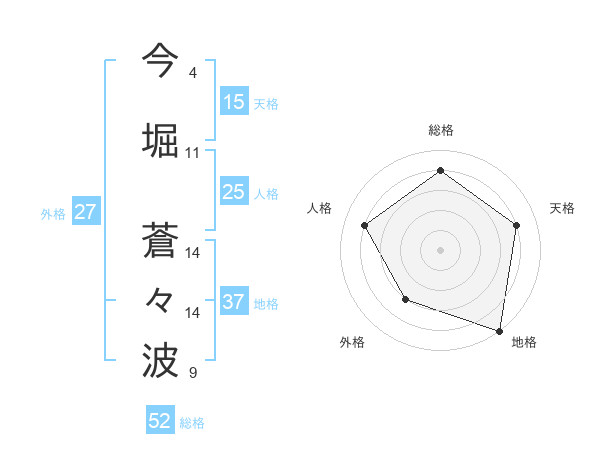 今堀 蒼々波さんを姓名の画数から五運を鑑定