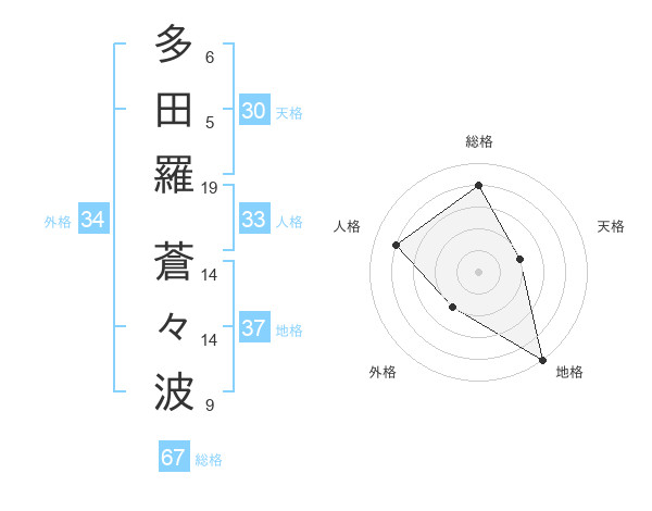 多田羅 蒼々波さんの総格は67画の4点!
