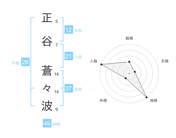 正谷 蒼々波さんを姓名の画数から五運を鑑定