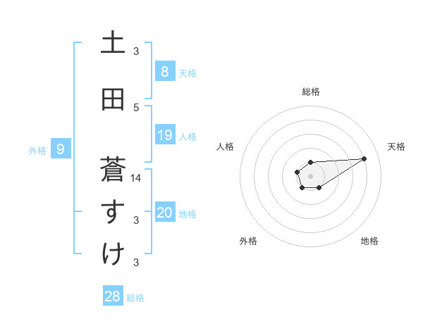土田 蒼すけさんを姓名の画数から五運を鑑定
