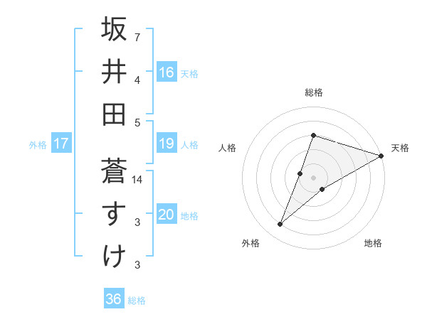 坂井田 蒼すけさんの総格は36画の3点