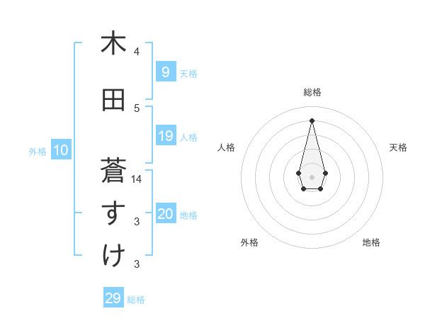木田 蒼すけさんを姓名の画数から五運を鑑定