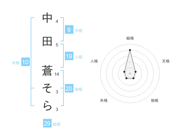 中田 蒼そらさんを姓名の画数から五運を鑑定