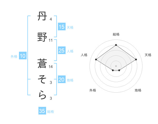 丹野 蒼そらさんを姓名の画数から五運を鑑定