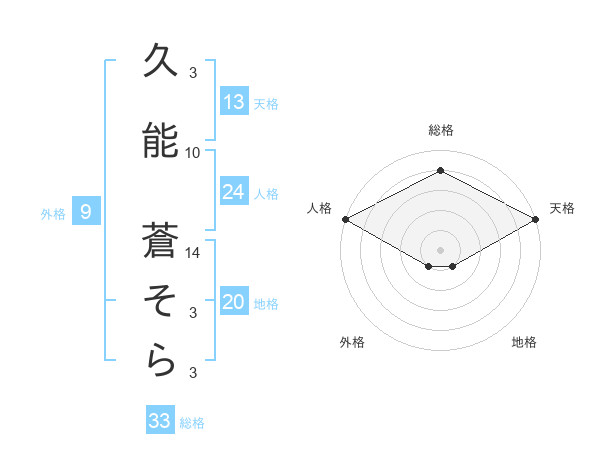 久能 蒼そらさんの総格は33画の4点!