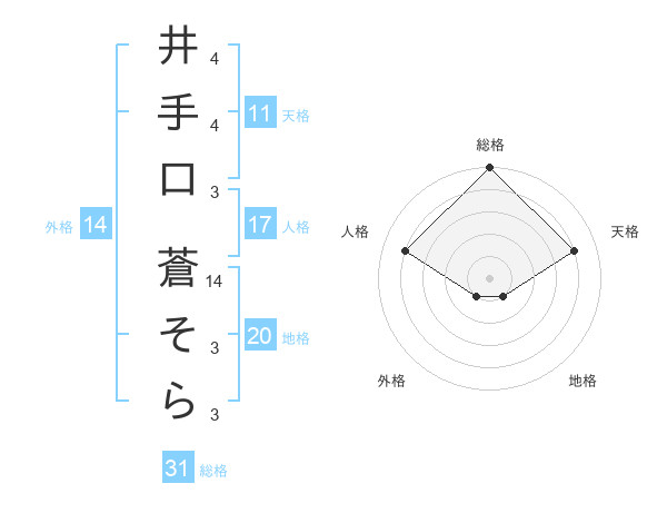 井手口 蒼そらさんを姓名の画数から五運を鑑定