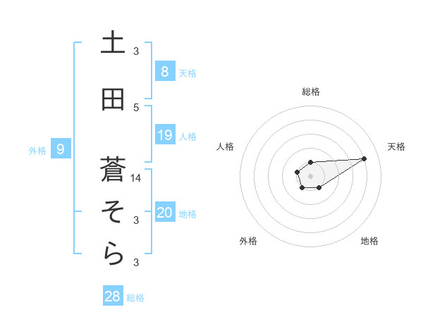 土田 蒼そらさんの総格は28画の1点!