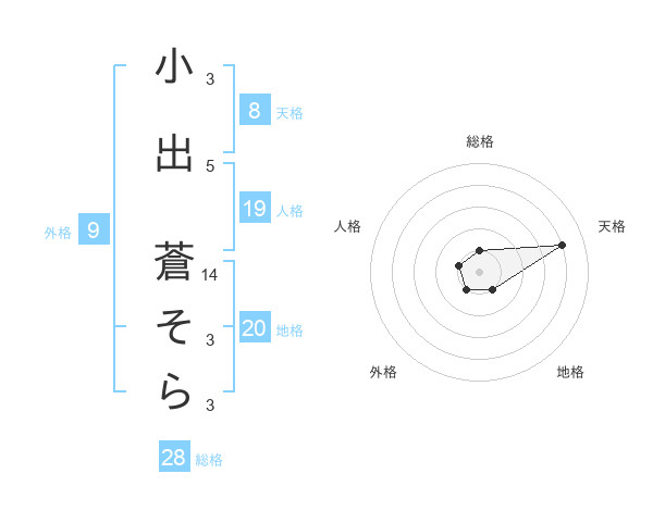 小出 蒼そらさんの天格は8画の4点!