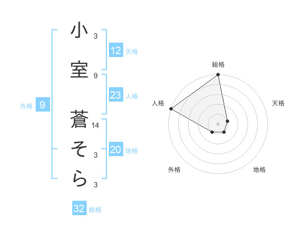 小室 蒼そらさんを姓名の画数から五運を鑑定