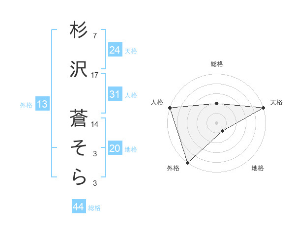 杉沢 蒼そらさんを姓名の画数から五運を鑑定