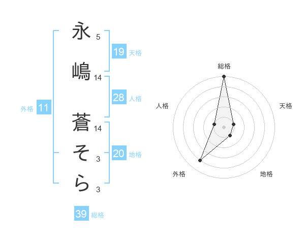 永嶋 蒼そらさんを姓名の画数から五運を鑑定