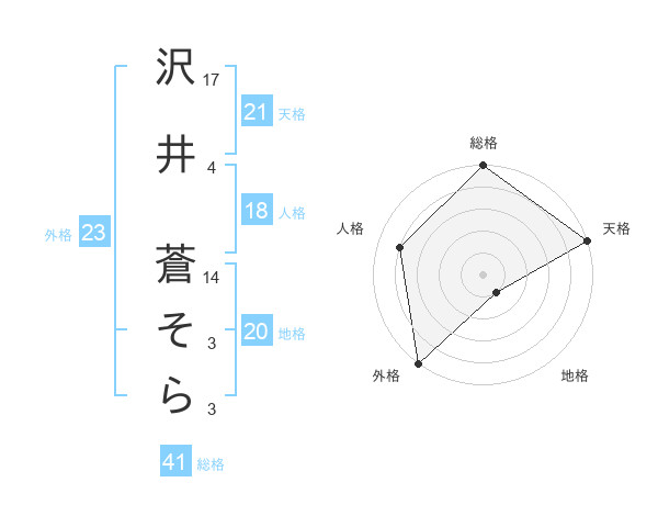 沢井 蒼そらさんを姓名の画数から五運を鑑定