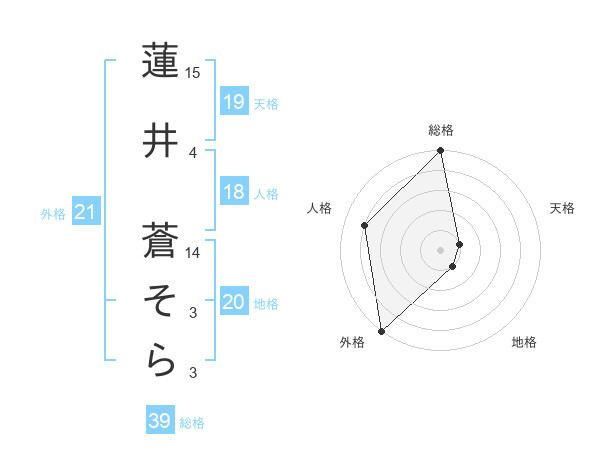 蓮井 蒼そらさんの総格は39画の5点!