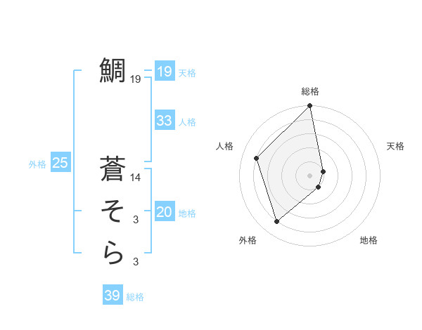 鯛 蒼そらさんを姓名の画数から五運を鑑定
