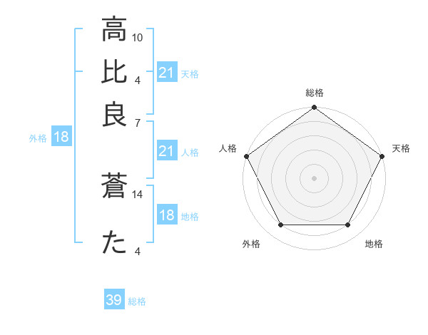 高比良 蒼たさんの天格は21画の5点!