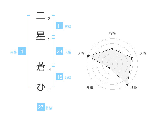 二星 蒼ひさんを姓名の画数から五運を鑑定