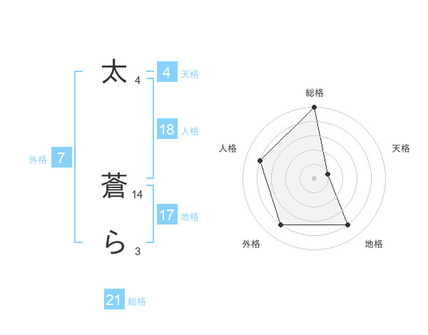 太 蒼らさんの地格は17画の4点!