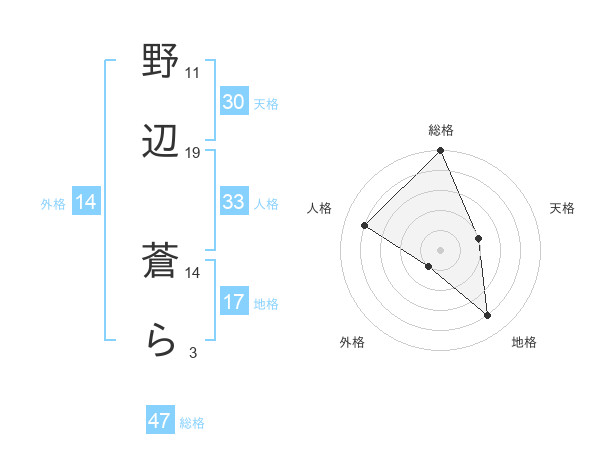 野辺 蒼らさんの外格は14画の1点!