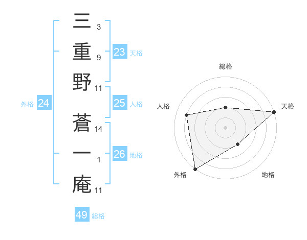 三重野 蒼一庵さんを姓名の画数から五運を鑑定