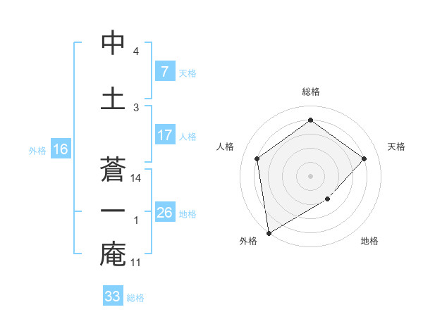 中土 蒼一庵さんの総格は33画の4点!