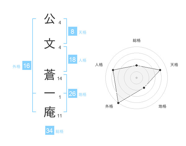 公文 蒼一庵さんを姓名の画数から五運を鑑定