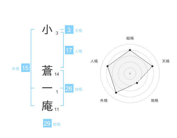 小 蒼一庵さんの総格は29画の4点!