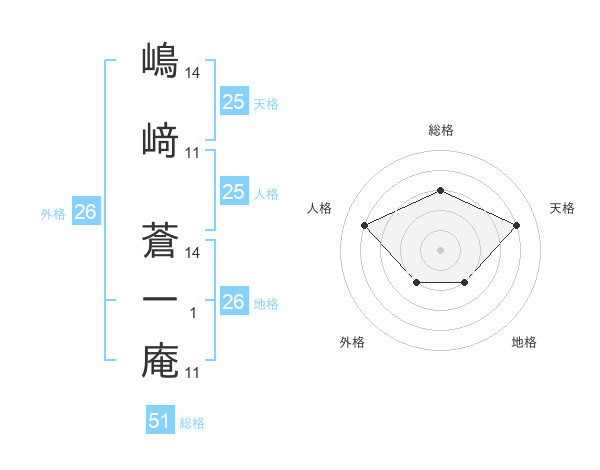 嶋﨑 蒼一庵さんの総格は51画の3点!