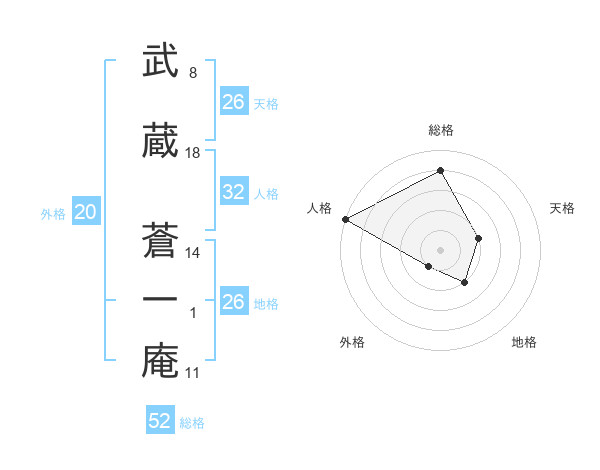 武蔵 蒼一庵さんを姓名の画数から五運を鑑定