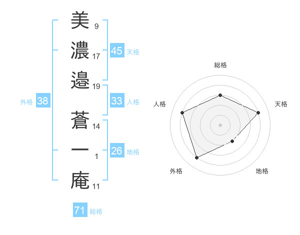 美濃邉 蒼一庵さんの総格は71画の3点!