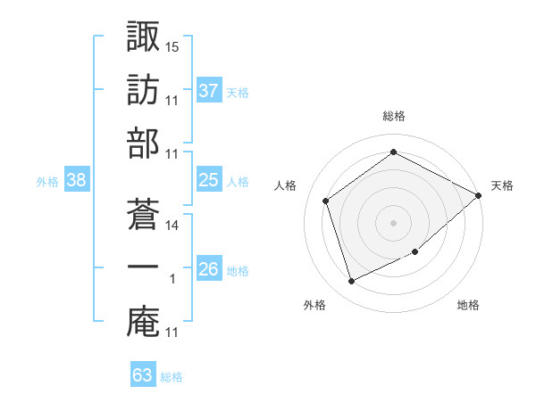 諏訪部 蒼一庵さんの総格は63画の4点