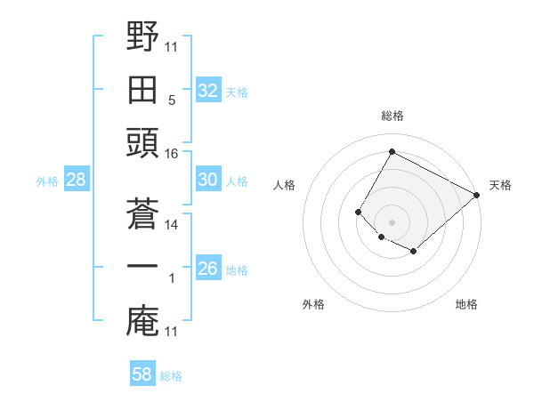 野田頭 蒼一庵さんの名前の鑑定結果は!