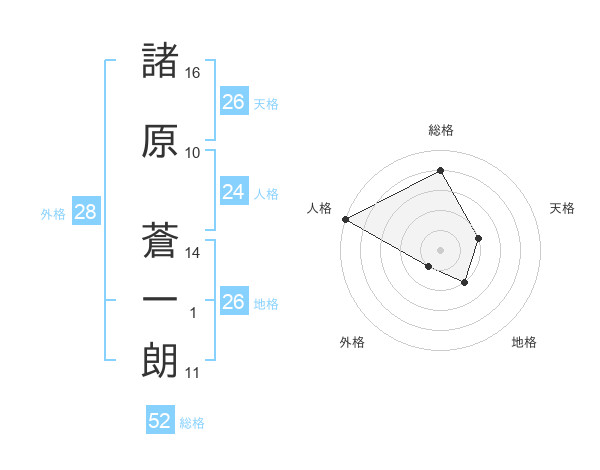 諸原 蒼一朗さんの総格は52画の4点!