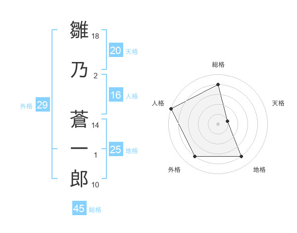 雛乃 蒼一郎さんの総格は45画の4点!