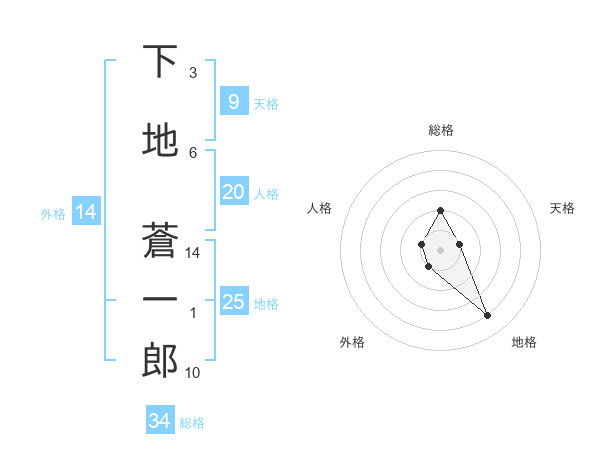 下地 蒼一郎さんを姓名の画数から五運を鑑定