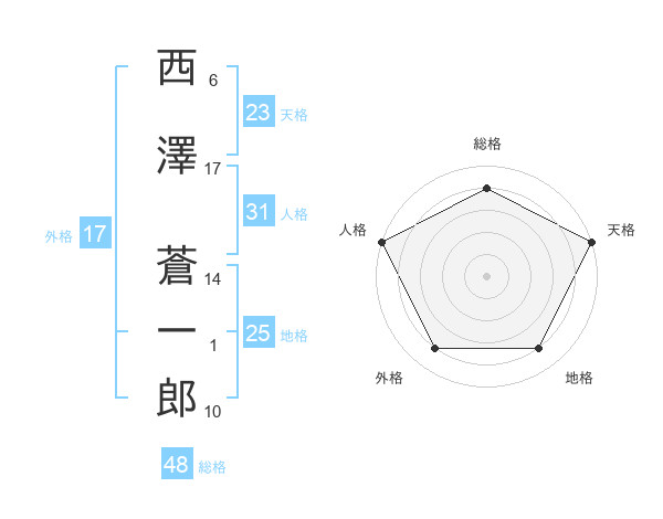 西澤 蒼一郎さんを姓名の画数から五運を鑑定