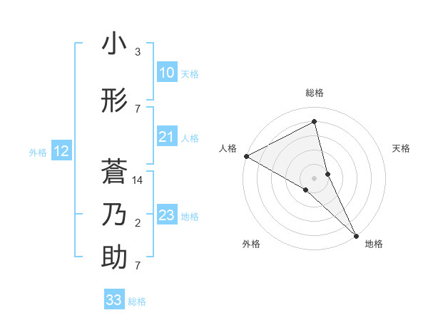 小形 蒼乃助さんの地格は23画の5点!