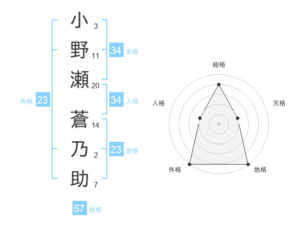小野瀬 蒼乃助さんを姓名の画数から五運を鑑定