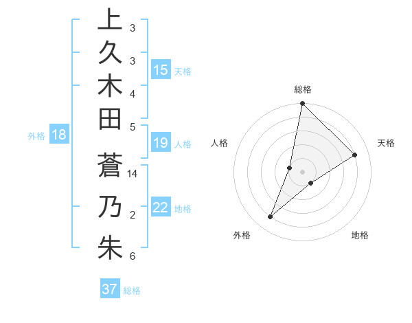 上久木田 蒼乃朱さんの総格は37画の5点!