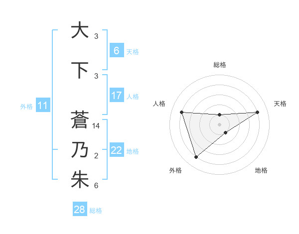 大下 蒼乃朱さんの総格は28画の1点!