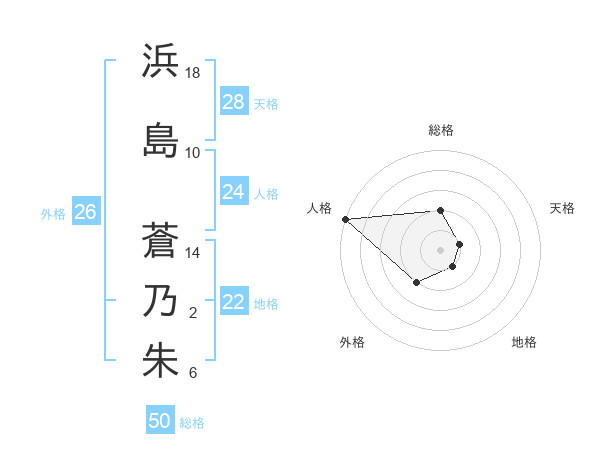 浜島 蒼乃朱さんを姓名の画数から五運を鑑定
