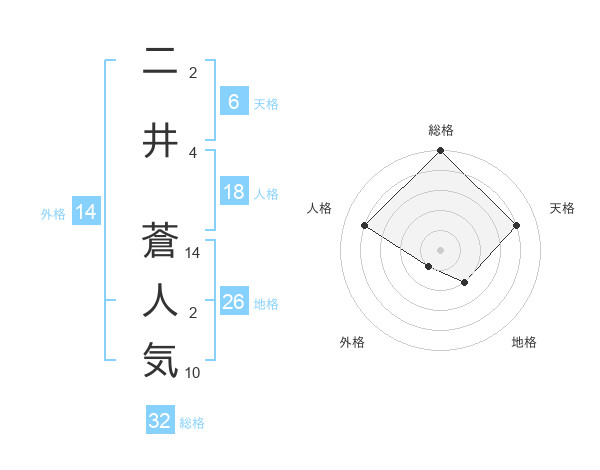 二井 蒼人気さんの総格は32画の5点!