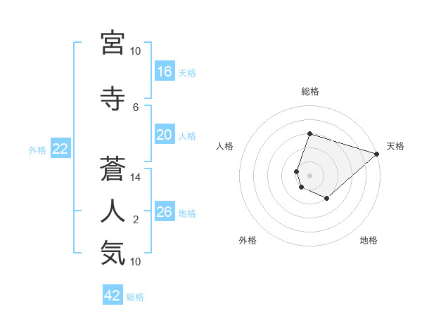 宮寺 蒼人気さんの天格は16画の5点!