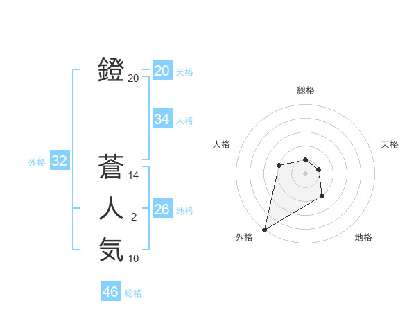鐙 蒼人気さんの天格は20画の1点!