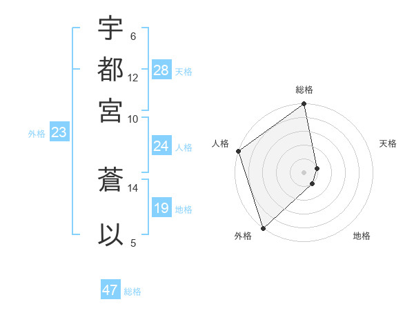 宇都宮 蒼以さんを姓名の画数から五運を鑑定