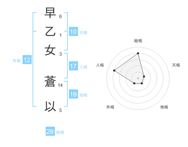 早乙女 蒼以さんを姓名の画数から五運を鑑定