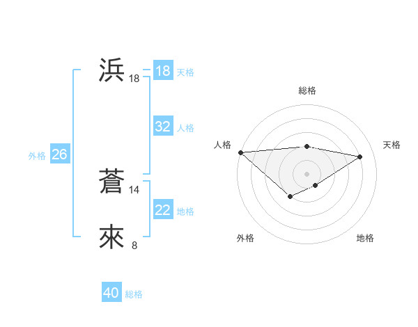 浜 蒼來さんの天格は18画の4点!